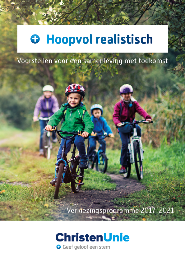 De ChristenUnie kiest voor de toekomst: een gezonde, groene economie, een verantwoord klimaat- en energiebeleid, goed en toegankelijk onderwijs. Wij kiezen voor een samenleving met gelijke kansen voor iedereen, ook op de arbeidsmarkt, en een eerlijk en houdbaar pensioenstelsel. Wij willen een land waar de kwaliteit van water, lucht, bomen en natuur vooruit gaat. Wij komen op voor de vrijheid van godsdienst, meningsuiting en onderwijs. Een land waarin iedereen meetelt en meedoet, ook mensen die zorg nodig hebben. Dat moet toch iedereen aanspreken?